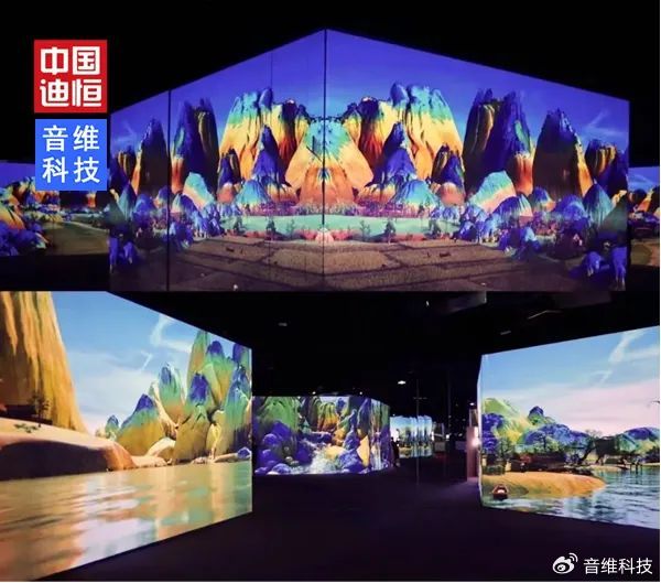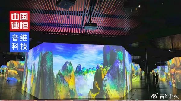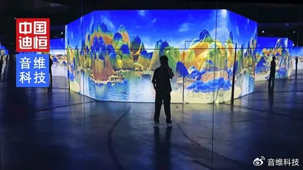 觀山展區,通過傳統藝術的數字活化,將江?圖各部分動態化數字化,選用迪恒7000流明段投影設備,通過三維技術,新建構了千?江?中的每?座?。空間也就是承載影像內容的形式實體,運?光的反射原理,在錯綜的鏡像空間中,畫?相互反射交疊。中國古代的?卷畫采?“移步換景”的觀看?式,觀看者將卷軸拿在?中?點點卷著看,所以壯闊的《千?江?圖》并不是完全的?覽?余,?是每??段都能獨?構成?個畫?。