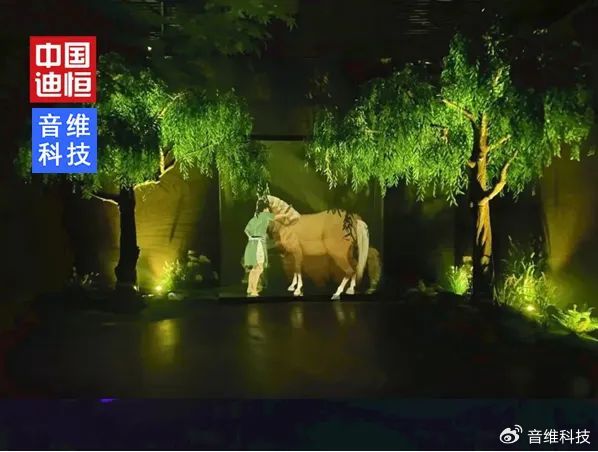 “浴馬”展區,“走進”趙孟類的《浴馬圖》,看到古人牽著馬兒從畫中款款走出,觸手可及。基于全息影像+園林造景與空間設計,讓原本在古畫中靜?的?物與?從古畫中?出,?與?動態各異仿佛置身?前,?進作品同時也變成作品的?部分。