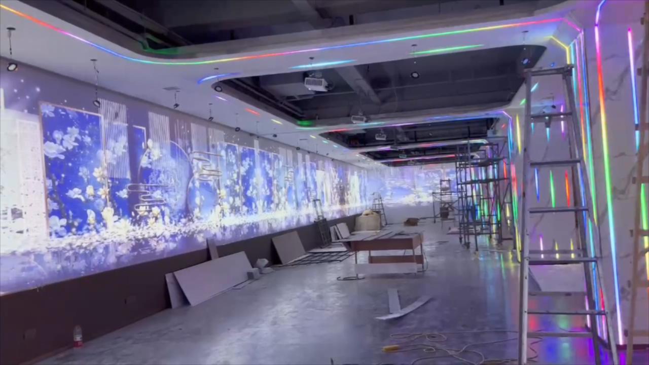 其次,音維科技將根據(jù)宴會廳的主題和氛圍,調(diào)換精美的畫面素材。通過融視盒子對13個墻體畫面做視頻融合處理,并對畫面比例、色彩搭配、內(nèi)容選擇等方面的精心策劃,使得投影畫面與宴會廳的環(huán)境相得益彰,營造出更加絢麗多彩的氛圍。無論是瑰麗的自然風(fēng)光、浪漫的場景還是激揚(yáng)的動態(tài)影像,都能讓賓客沉浸在光影交錯的美妙氛圍中。