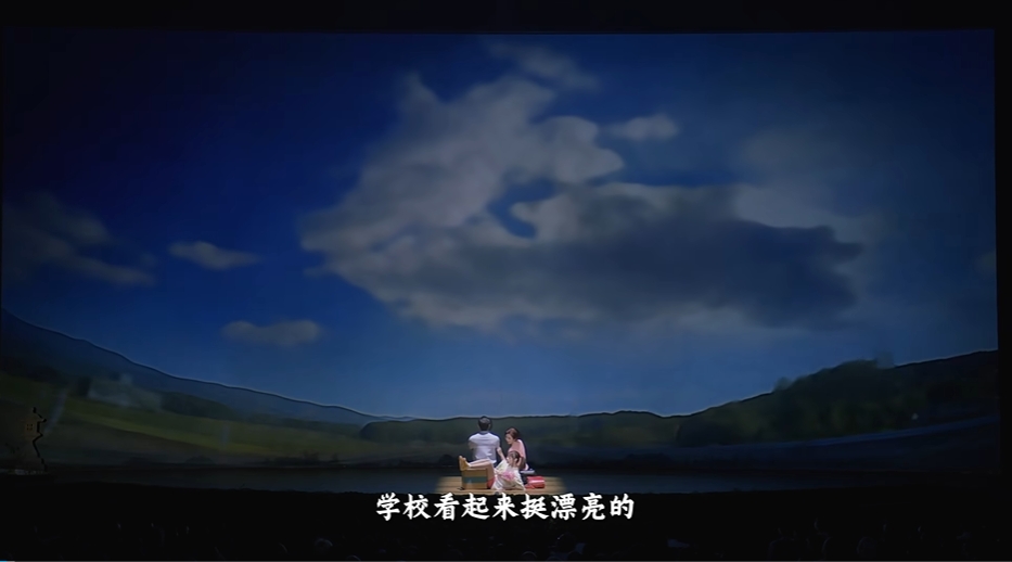 在舞臺劇的開場,高清激光投影機打出了大屏畫面,高度還原了動畫開始的場景。觀眾們仿佛被帶入了一個神秘而奇幻的世界,與千尋一同踏上了冒險的旅程。激光投影技術(shù)以其高清晰度、高亮度和色彩還原度,讓觀眾感受到了與原作動畫相似的細膩畫面和豐富色彩。