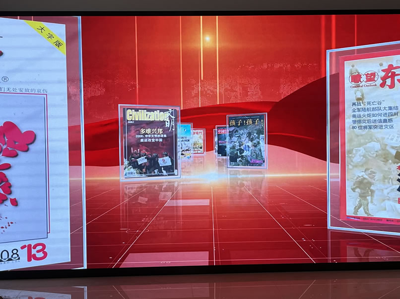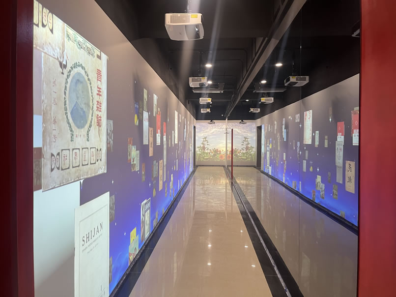 在展廳的光影系統(tǒng)的設(shè)計和實施過程中,音維科技充分發(fā)揮了其技術(shù)優(yōu)勢和創(chuàng)新精神。首先,音維科技的技術(shù)團(tuán)隊對北京文景珍本期刊博物館的展示需求進(jìn)行了深入的分析和理解,結(jié)合其實際的場地條件和使用場景,量身定制了一套展廳光影解決方案。該方案不僅充分考慮了投影畫面的清晰度、色彩還原度等視覺效果因素,還通過精確的投影角度和位置調(diào)整,實現(xiàn)了展廳投影多畫面的完美融合。