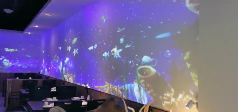此次音維科技回到了這座歷史古城無錫,應客戶的要求,在一個火鍋店打沉浸式投影。