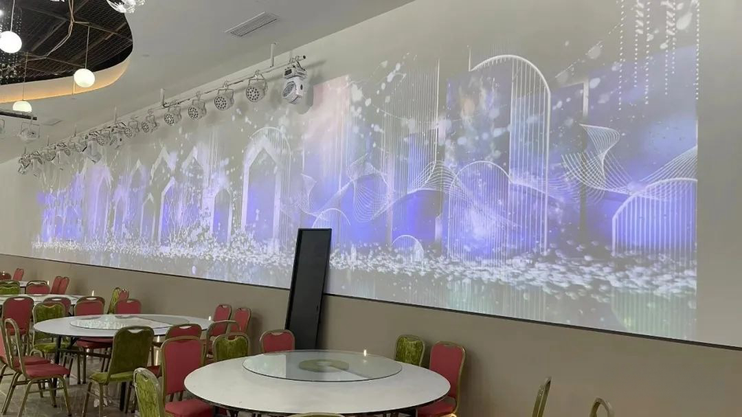 本次音維科技的技術團隊為杰瑞酒店的宴會廳方案采用了8臺均來自中國國產投影機銷量排行穩居top前二的迪恒激光投影。該激光高清投影機擁有6200lm高亮度,即使是在宴會廳明亮的燈光下,畫面依舊清晰亮麗。色彩區域達到REC.709色域標準,色彩鮮艷真實,超高對比度使得畫面更通透細膩。為用戶帶來無與倫比的虛擬影像,將世界萬象盡收眼底,觀看效果更真實生動。