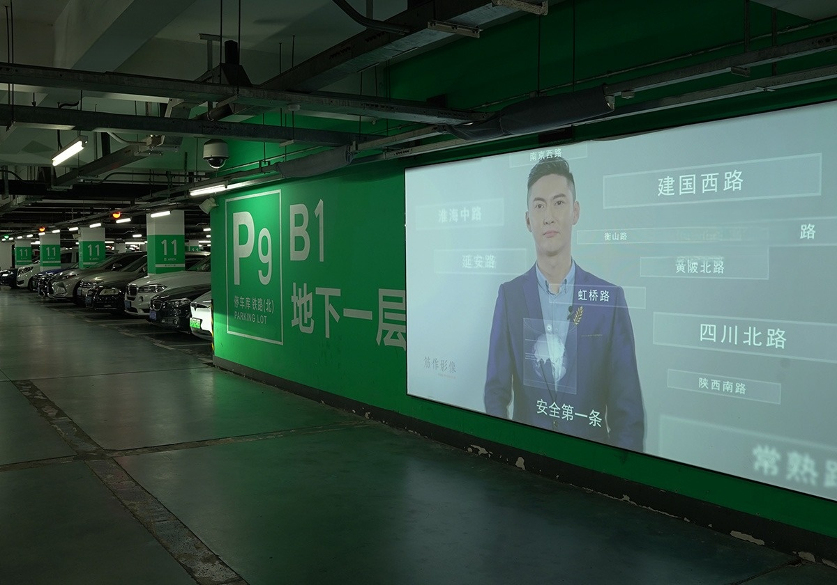 簡要描述:上海虹橋地下停車場:墻體投影。...
