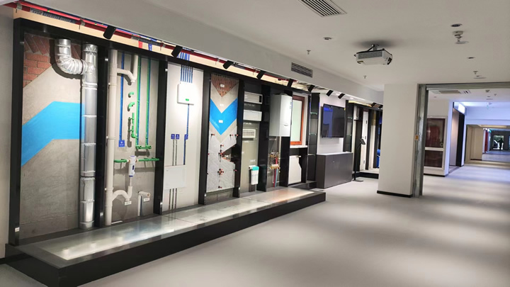 上海百姓數智裝潢數智家裝體驗館展廳的五折幕投影系統由音維科技承制,根據客戶要求,在比較寬大的展廳中投射至四面墻及地面上,共同展現出特定的家裝風格,讓客戶身處其中,沉浸式感受裝修后的家裝效果,并可以隨時調換新的風格,對客戶體驗更加方便和友好。